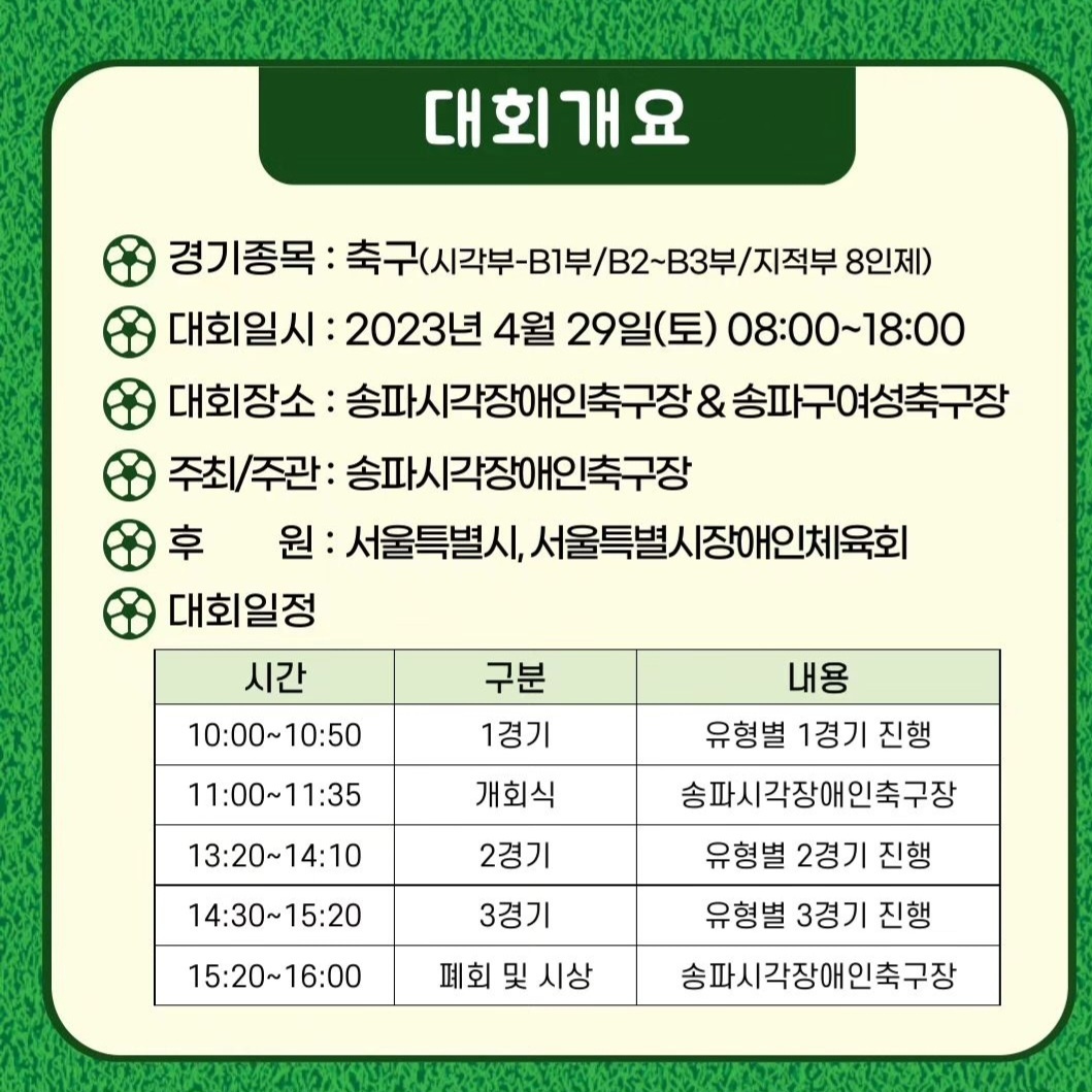 2023 ¼¿ïƯº°½Ã Àå¾ÖÀÎ Ã౸ µ¿È£ÀÎ ´ëȸ Ä«µå´º½º